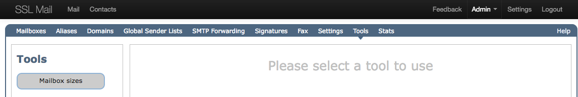 3. Click on Tools in the nav below and click on Mailbox sizes.